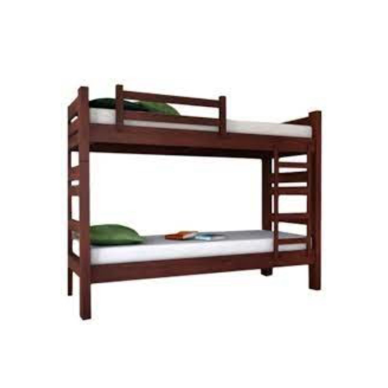 Cucheta desmontable de madera con dos camas paralelas, baranda y escalera.