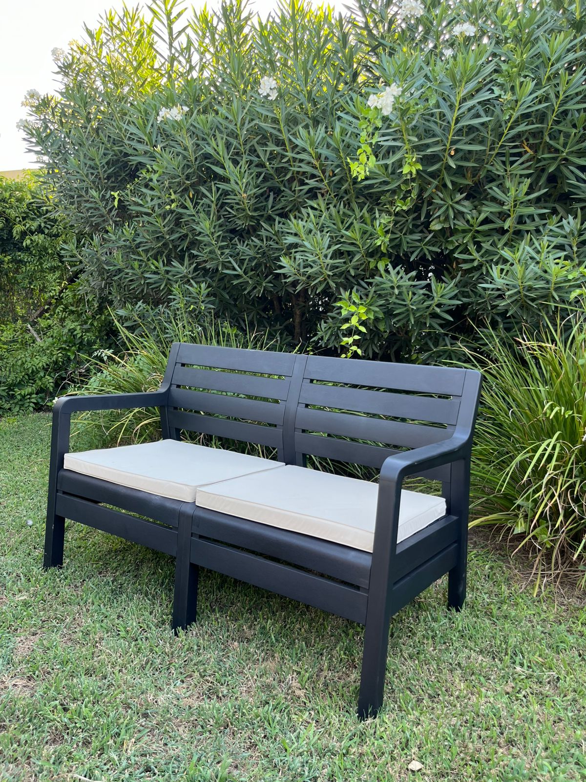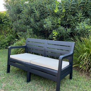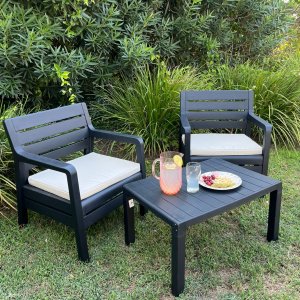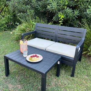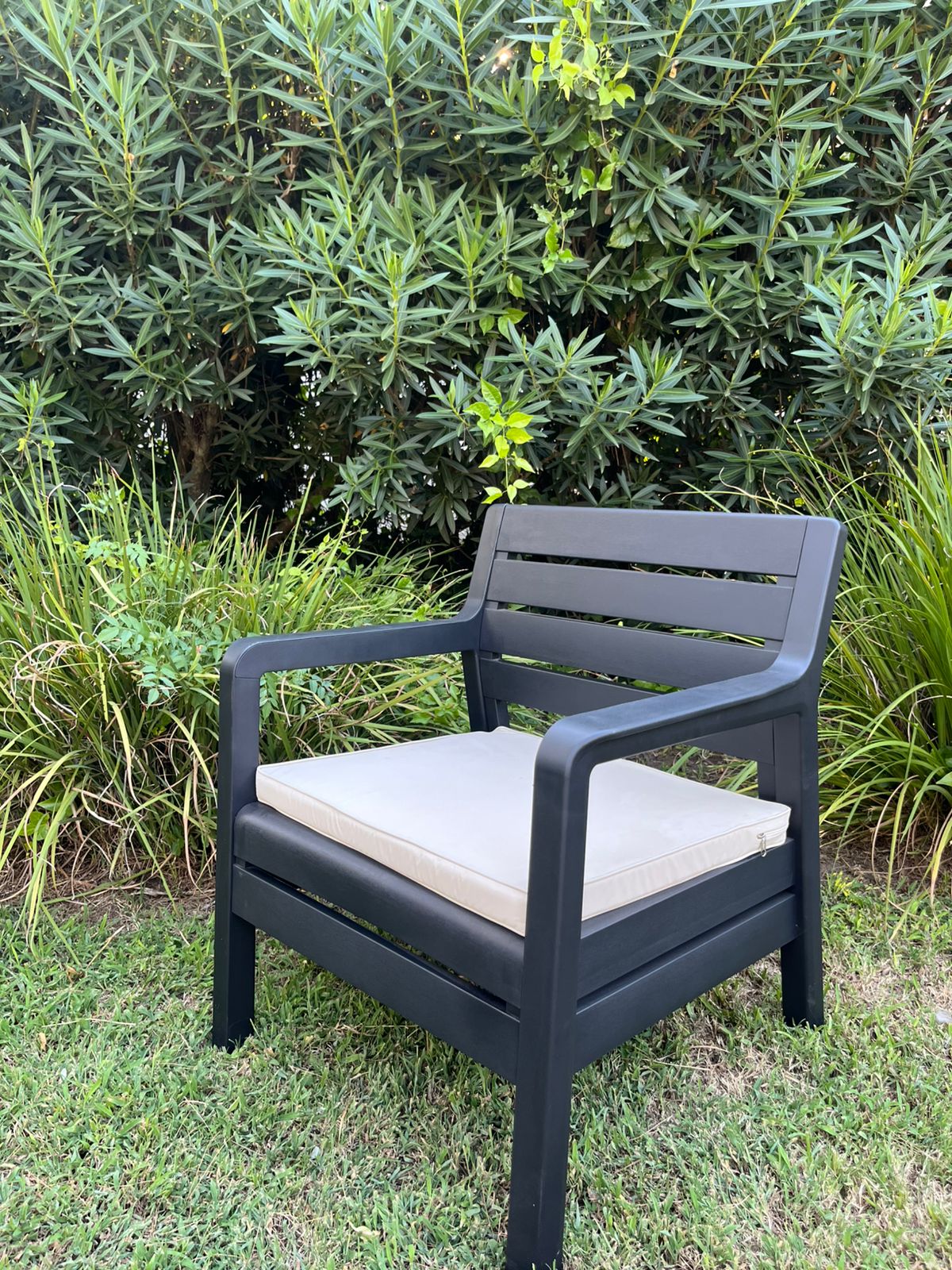 El complemento ideal para tu espacio. Ofrece un confort único. Contiene almohadones de tela impermeable y tanto los sillones como la mesa cuentan con tacos antideslizantes.